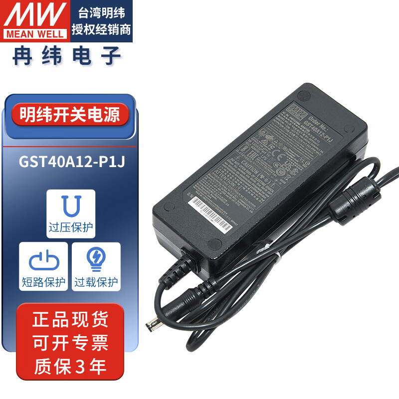 明纬(MEANWELL)开关电源220转DC12V转换适配器GST18/40/60/120/220A24-P1J/M监控 GST40A12-P1J