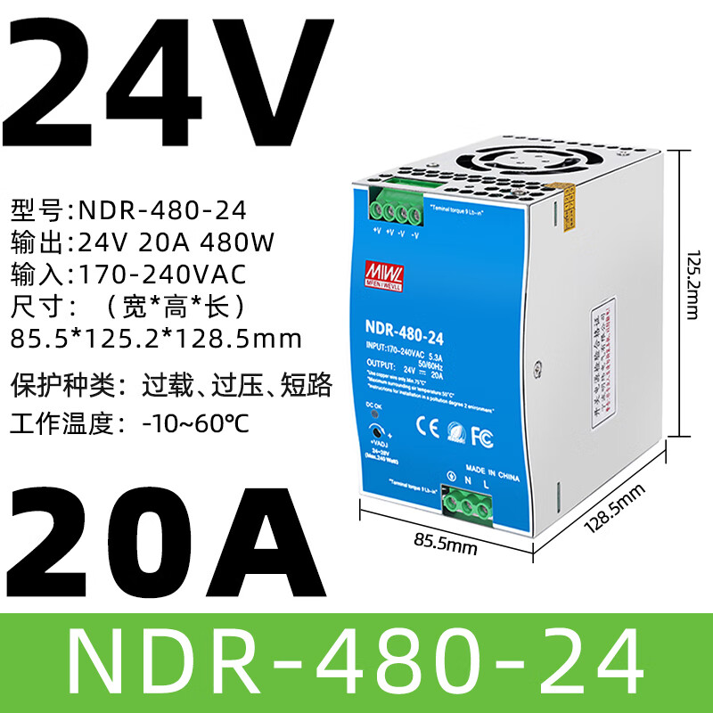 明纬(MEANWELL)EDR/NDR导轨式开关电源120W直流24VDR-75/150/240/5A明伟12V NDR-480-24 24V/20A480W