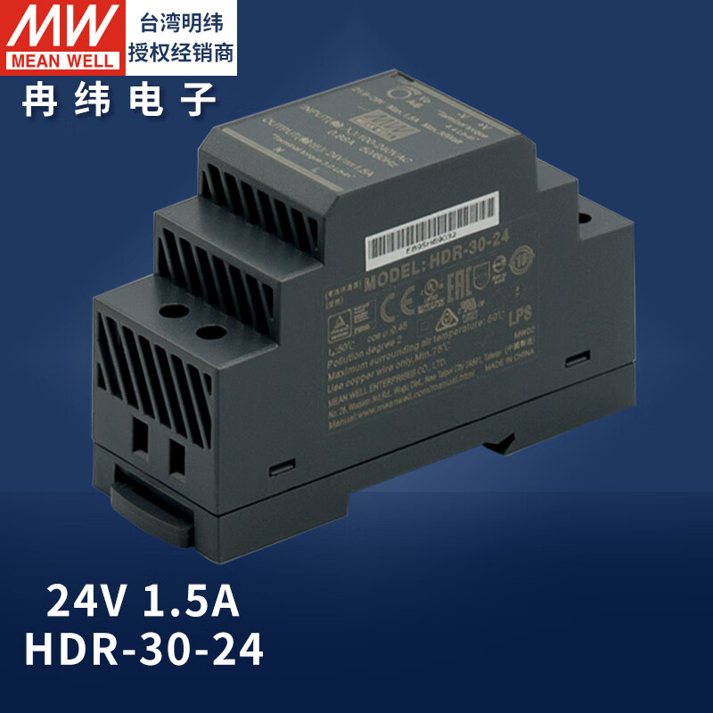 明纬(MEANWELL)导轨式HDR15W30W60W100W150W12V5A220转24V伏LED灯开关电源驱动器 HDR-30-24