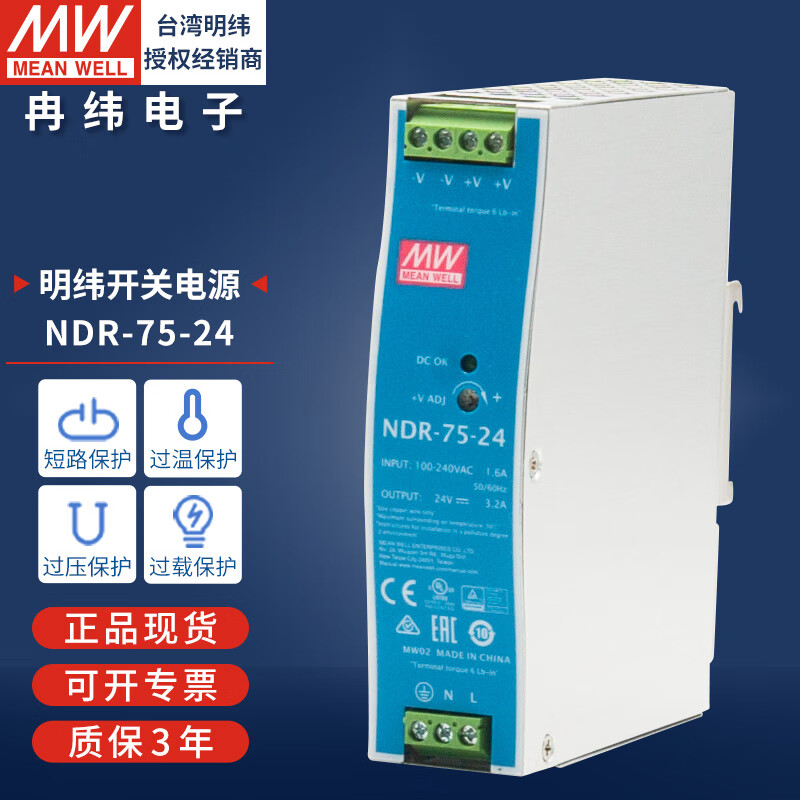 明纬导轨式开关电源40W75W120W240W直流220v转12v24v10A变压器LED驱动 NDR-75-24