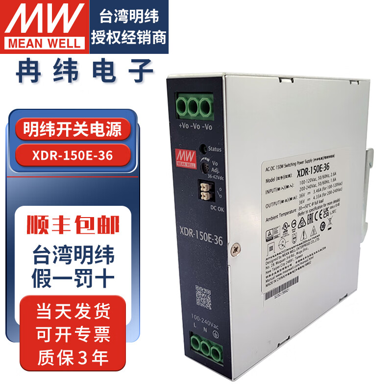 明纬(MEANWELL)导轨式开关电源220转12V24V40A20A直流120W240W480WLED变压驱动器 XDR-150E-36