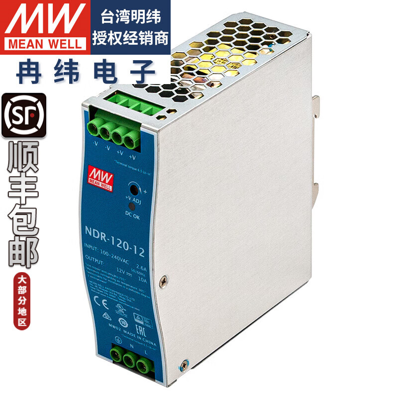 明纬(MEANWELL)明纬开关电源12v10A导轨式NDR240W24伏48V20A直流LED灯驱动变压器 NDR-120-12