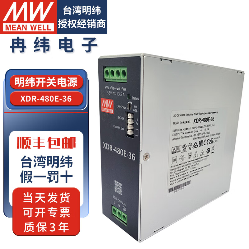 明纬(MEANWELL)导轨式开关电源220v转12V480W直流XDR-480E-24V薄LED灯驱动变压器 XDR-480E-36|36V13.3A