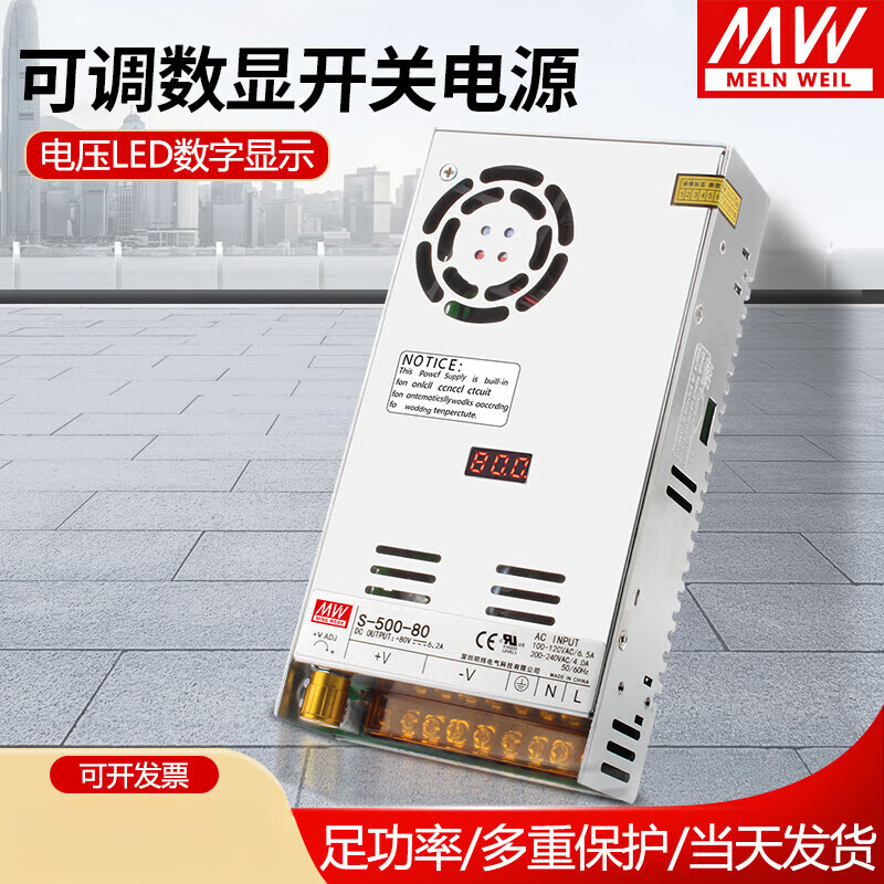 明纬数显可调开关电源S-500W-24V直流0-5V12V36V48V60V80V90V充电 S-500-50-5V60A