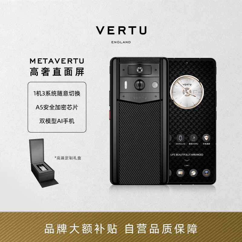 VERTU威图纬图奢品加密手机META双曲屏AI智能体手机5G商务高端礼物一机双系统 黑色碳纤维12GB+512GB