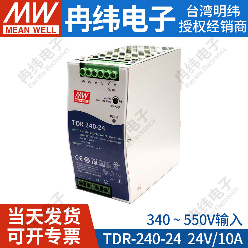 明纬(MEANWELL)导轨式开关电源TDR480W960W大功率灯380转24V轨道LED灯驱动变压器 TDR-240-24