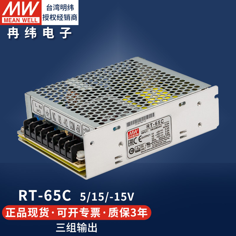 明纬开关电源24V三路组输出RT50W65W85W125W多路5V12V-12V15V-15V驱动 RT-65C 5V15V-15V