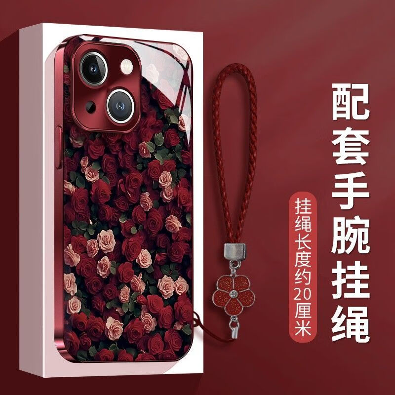ÊÊÓÃÓÚÆ»¹û15ºìõ¹åµç¶Æ²£Á§¿Ç·ÀˤÊÖ»ú¿ÇÅ®¿î¸ß¼¶¸Ð±£»¤ µç¶Æ²£Á§¿Ç-¾ÆºìÉ«-ºìõ¹å+ ÎåÒ¶»¨¹ÒÉþ Æ»¹û15