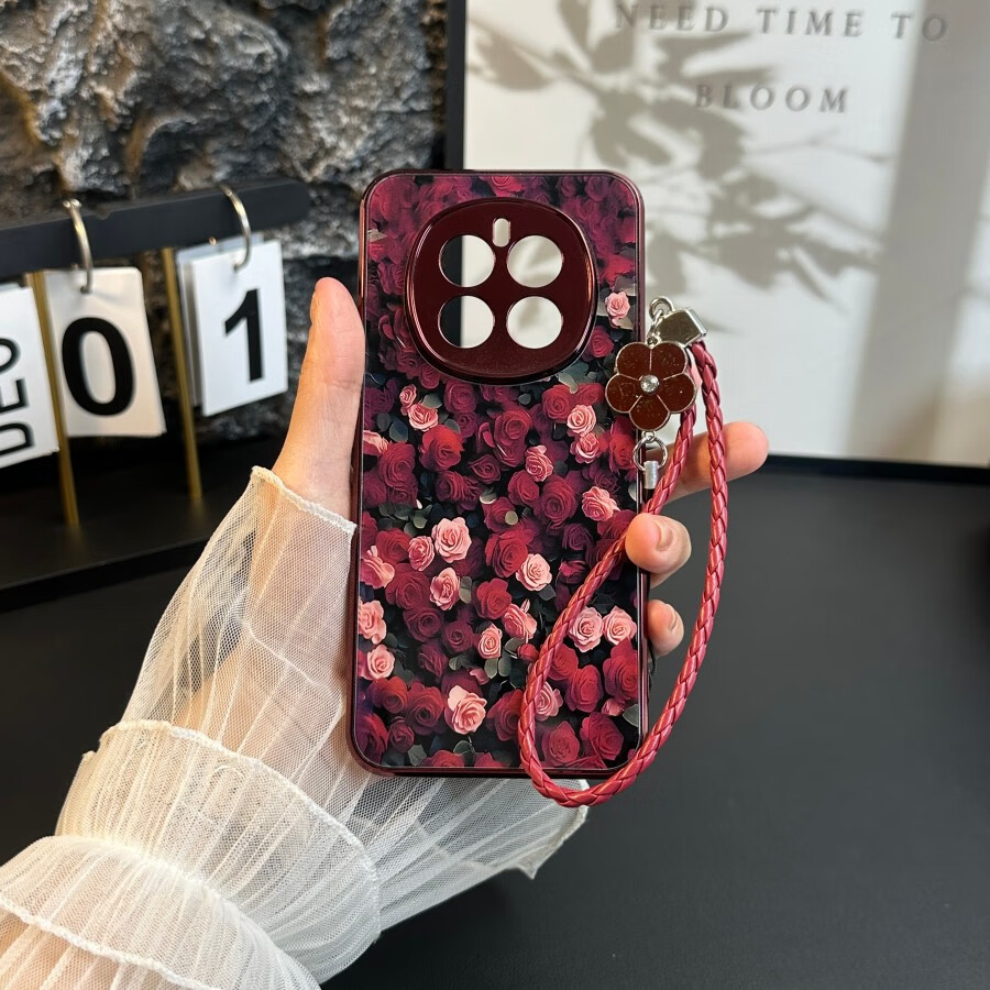 ÊÊÓÃÓÚÆ»¹û14ºìõ¹åµç¶Æ²£Á§¿Ç·ÀˤÊÖ»ú¿ÇÅ®¿î¸ß¼¶¸Ð±£»¤ µç¶Æ²£Á§¿Ç-¾ÆºìÉ«-ºìõ¹å+ ÎåÒ¶»¨¹ÒÉþ Æ»¹û14