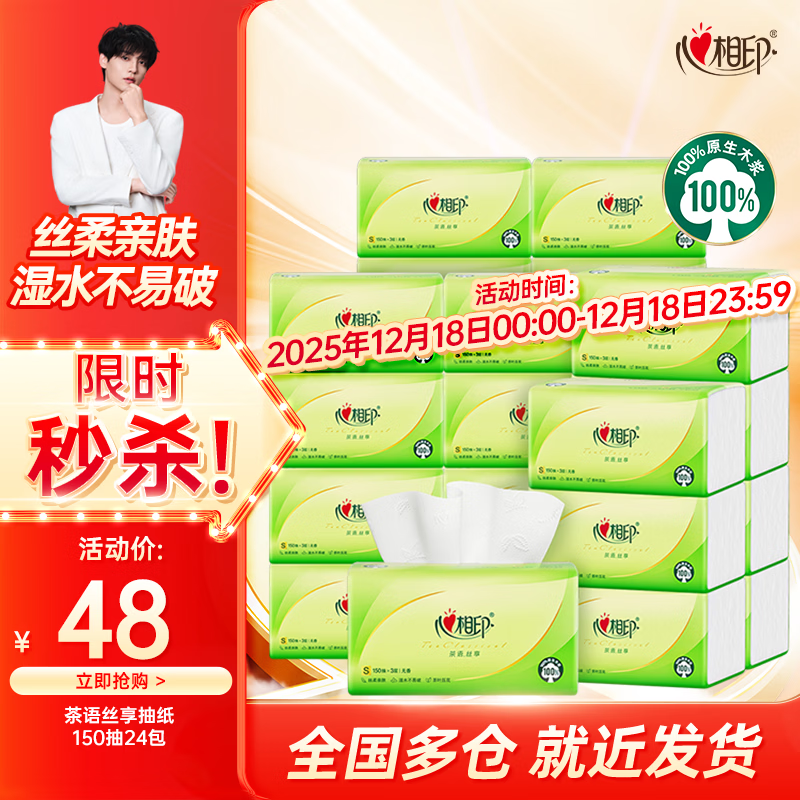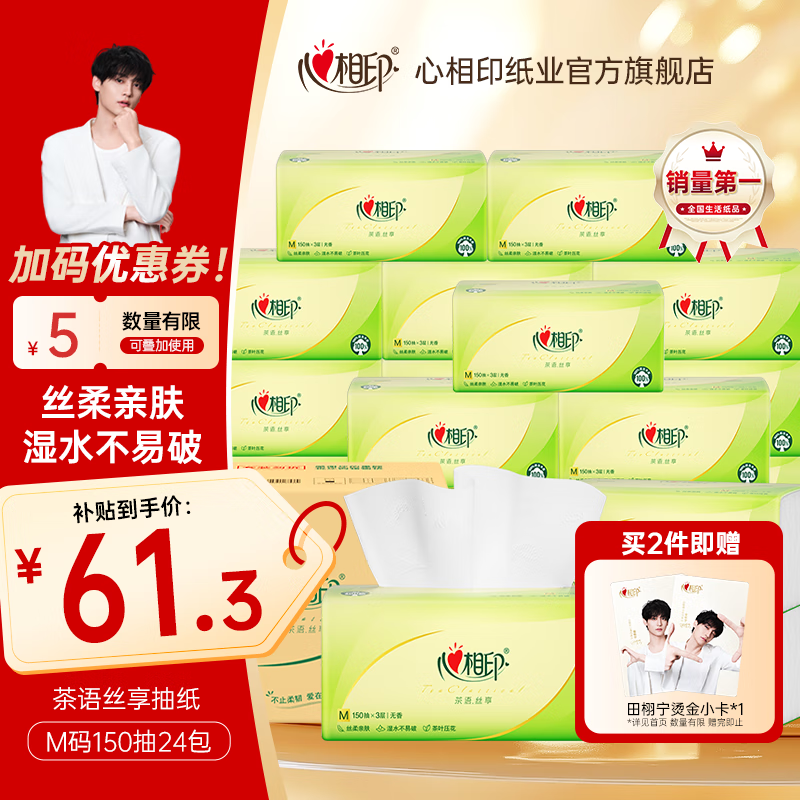 ÐÄÏàÓ¡²èÓïË¿Ïí³éÖ½ MÂë 150³é 24°ü ĸӤ¿ÉÓôóºÅÖ½½í²Í½íÖ½³éÖ½ÕûÏä MÂë 3²ã 150³é*20°ü