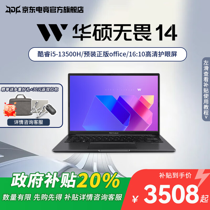 • 华硕(ASUS)无畏14 酷睿版 政府补贴20% 14英寸便携办公学生学习轻薄笔记本电脑 RA 极夜黑/i5-13500H 16G 1T 16G内存 1T固态硬盘