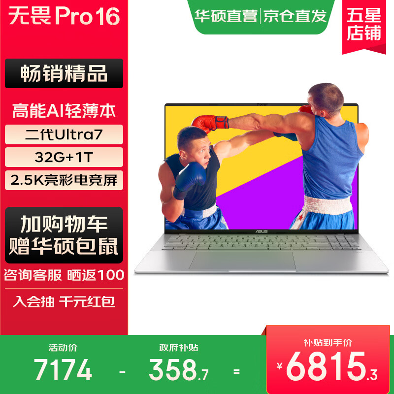 • 华硕【圣诞礼物】无畏16 酷睿版 国家补贴20% 标压处理器 2.5K 144Hz高分高刷高性能轻薄笔记本电脑 标压i5 | 银色 | FHD护眼屏 16G 16G|512G