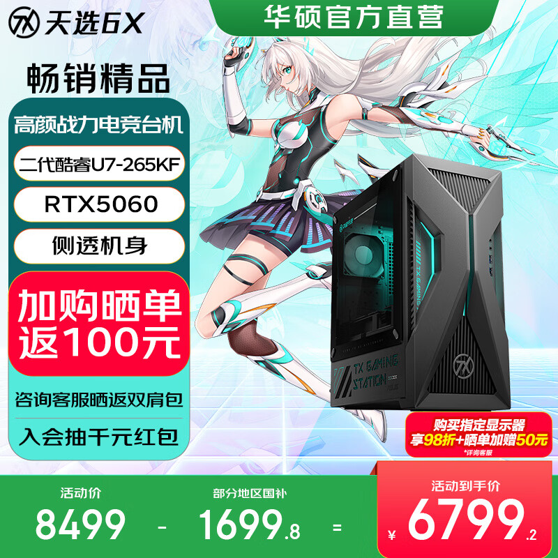 • 华硕天选6X 国家补贴20% 台式机游戏主机游戏电竞 U7-265KF RTX5060-8G 16G 1T