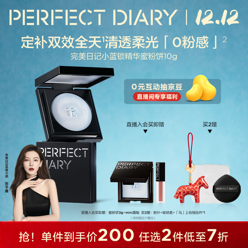 完美日记【买大送小】小蓝锁精华蜜粉饼10g#清透蓝定妆控油圣诞节礼物