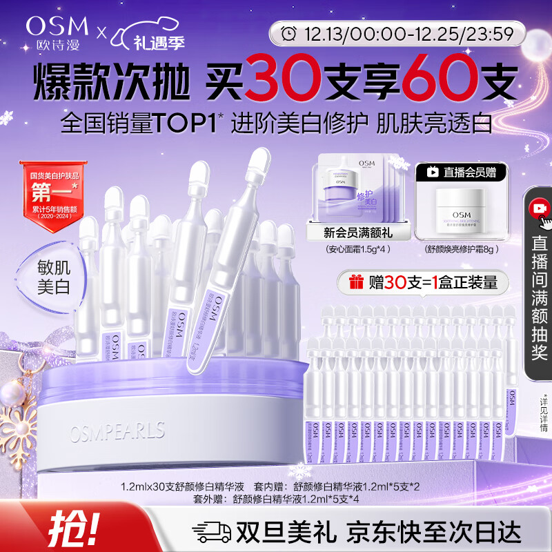 欧诗漫(OSM)舒颜修白次抛精华敏肌晒后美白提亮安心小白管化妆品圣诞礼物30支