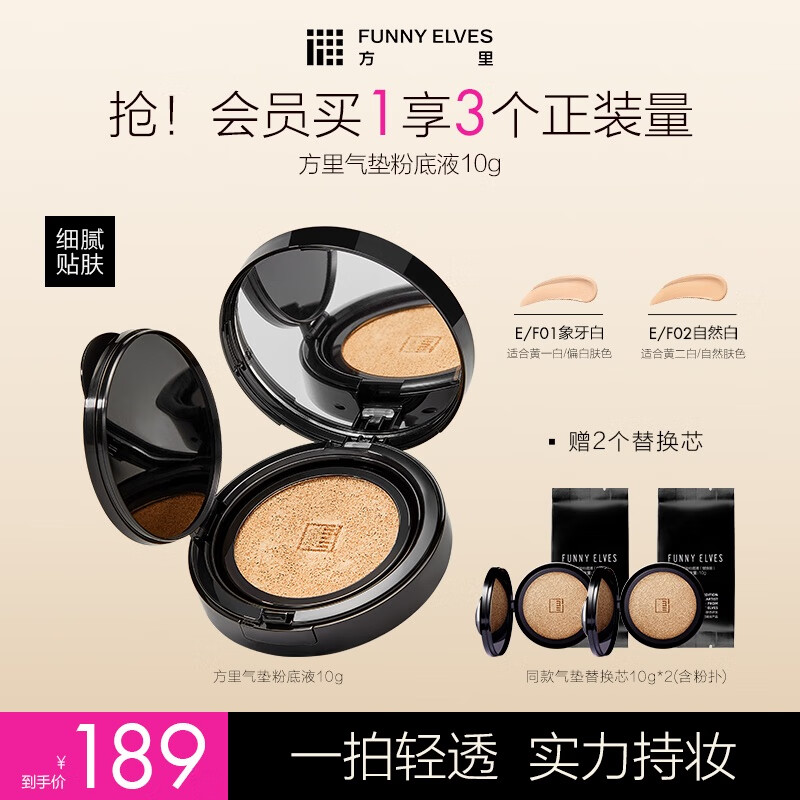 方里(FUNNY ELVES)【圣诞礼物】气垫粉底液 定妆补妆粉底液持久不脱妆 干皮象牙白 10g E01