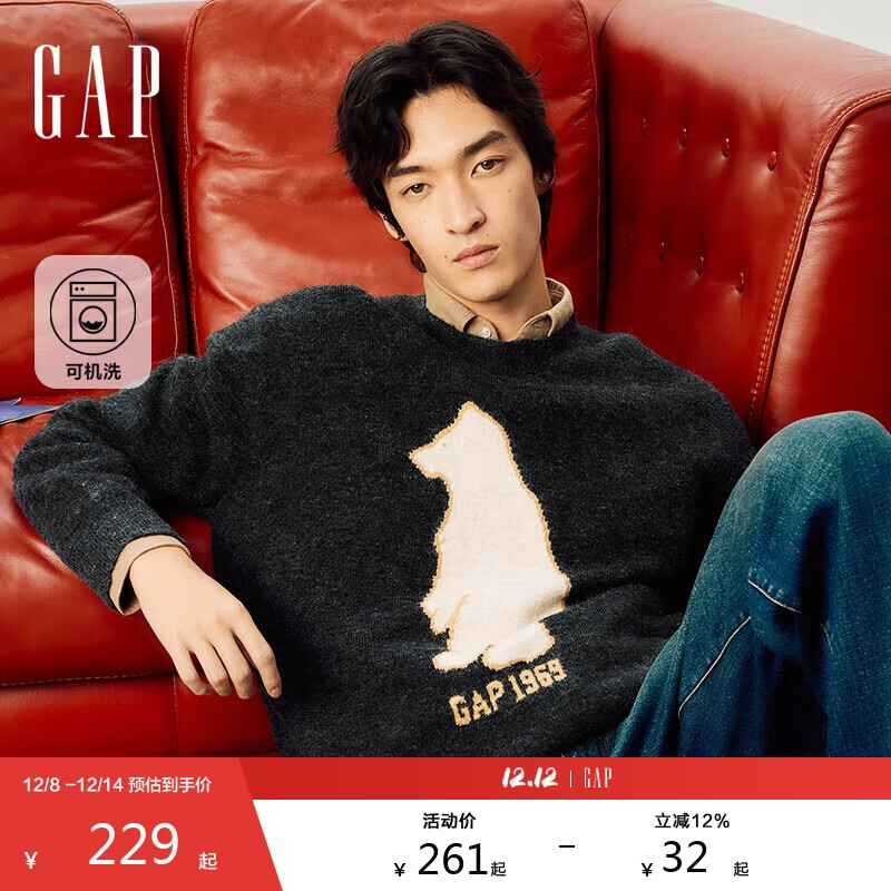 盖璞男女装2025秋季新款小熊提花logo宽松圆领针织衫上衣792153