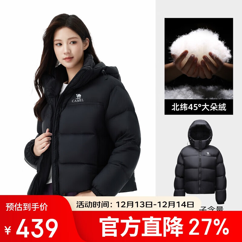 骆驼黑钻3.0短款羽绒服女装冬新款保暖防风连帽羽绒外套面包服