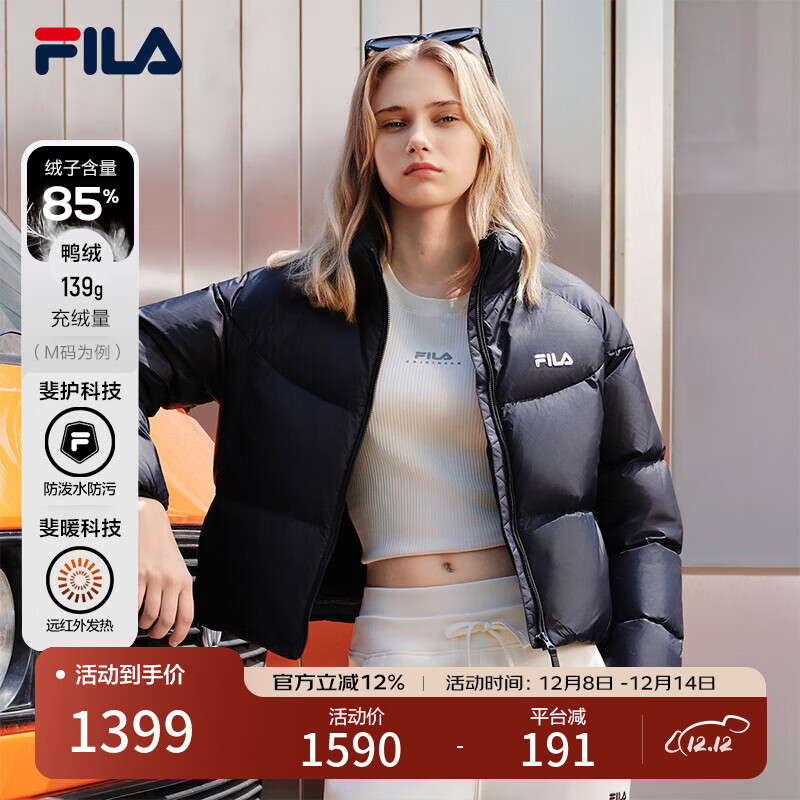 FILA RGB-多彩羽绒|斐乐官方女装羽绒服2025冬季新款时尚休闲短款外套 正黑色-BK M 165/84A/M