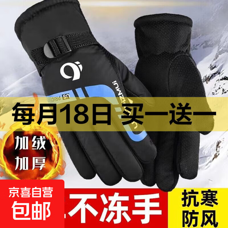 冬季男女加绒加厚电动车摩托车骑行防风寒防水防冻保暖手套户外滑雪保暖手套 【加绒加厚】炫彩蓝色