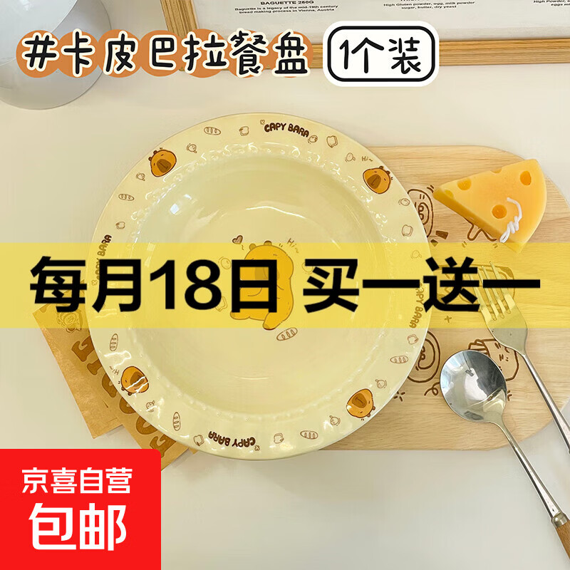 卡皮巴拉陶瓷餐盘可爱家用宿舍草帽盘蛋糕盘高颜值精致餐具碗盘 卡迪巴拉【1个装】8.5英寸草帽盘